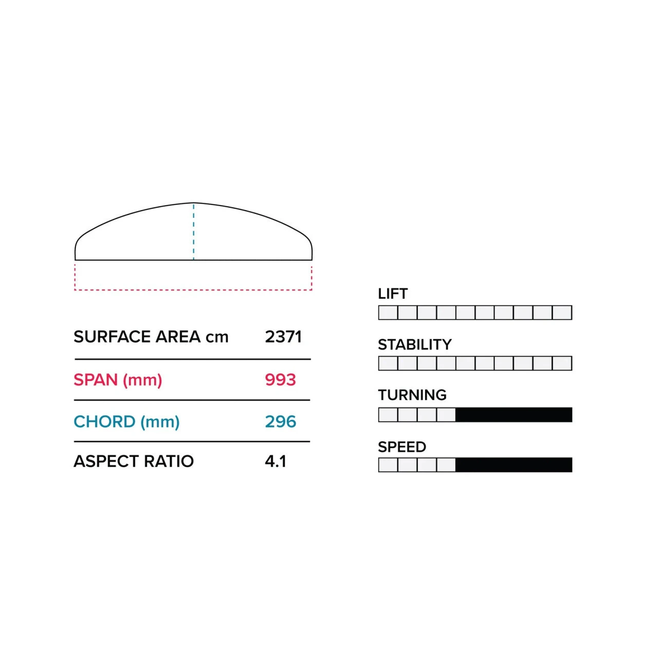 - Self-regulating lift at higher speeds to prevent over-foiling.